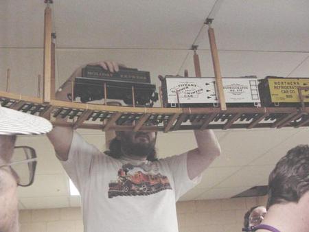 We will often give a throttle to our guest, especially young engineers, to run one of our trains themselves. We also generally allow guests of all ages to bring and run their own equipment, whether it’s a young fellow wanting to try his Thomas on the “big” layout, or a seasoned hobbyists trying out his newest masterpiece. If you have a train to try out, bring it down. If it doesn’t run right, usually we can help you find the problem. We usually have members there who can answer many of your questions or offer suggestions about building your own empire. There is no charge for any of this.